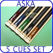 aska billiards L80005PCS ground shipping to USA and CanadaYou get all 5 cues (1 of each color)1 x RED1 x BLUE1 x GREEN1 x BLACK1 x BROWNHand Selected North American Hardrock maple forearm and sleeve The cues features five coats of urethane to increase the cue's scratch resistance The design is complemented by Irish linen wrap and a rubber bumper. Ferrule ABS Shaft Hardrock Canadian Maple 29" ...